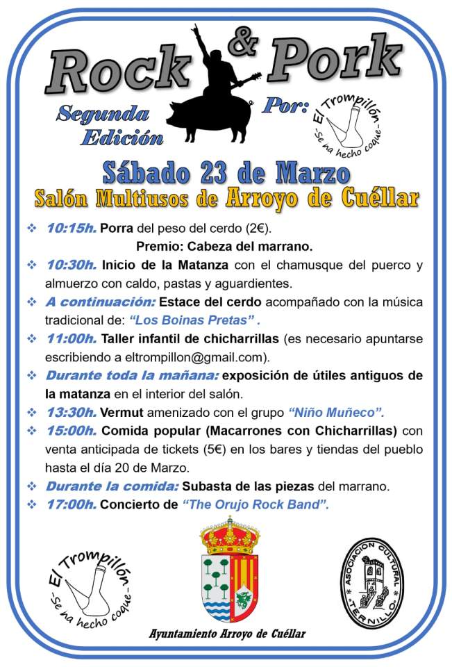 Tras el éxito de la primera edición del Rock & Pork el año pasado, la Asociación el Trompillón y el Ayuntamiento de Arroyo de Cuéllar vuelven a apostar por este evento que aúna las tradicionales matanzas y el Rock ‘n