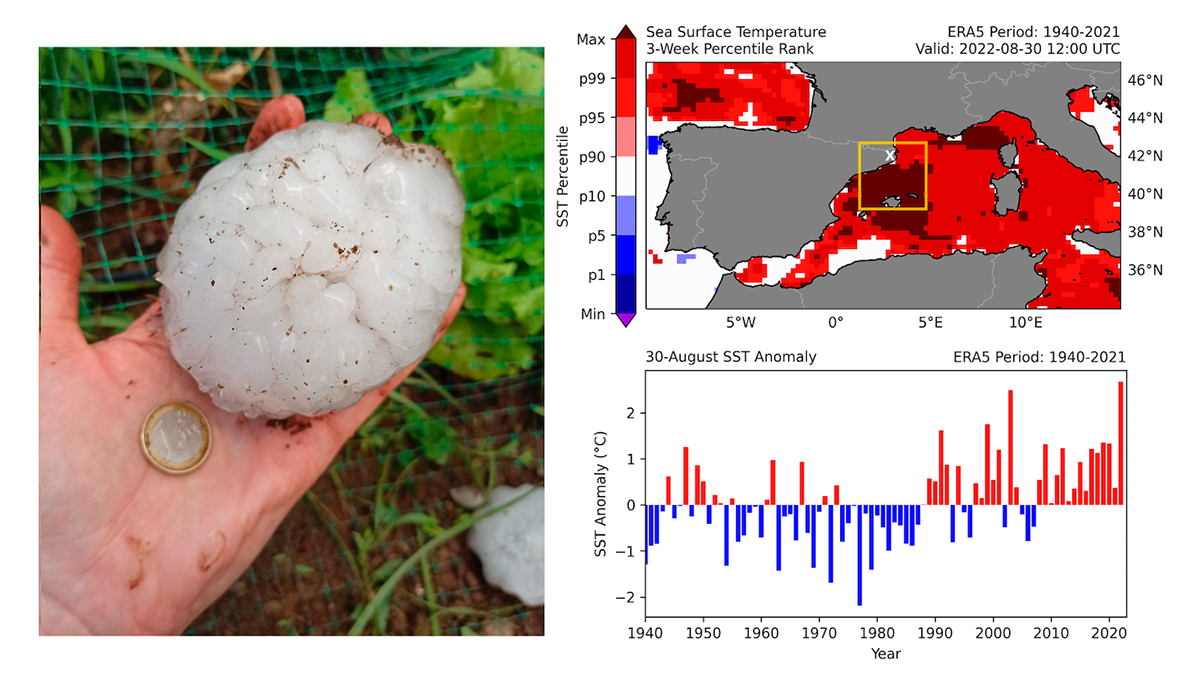 Una investigación establece una relación directa entre el cambio climático y la tormenta de granizo gigante (12 cm) del 30 de agosto de 2022 que afectó a la provincia de Gerona, afectando gravemente a la comarca del Baix Empordà. La tormenta dejó a su paso importantes daños materiales en coches, tejados y campos de cultivo. Lamentablemente, la tormenta de granizo gigante provocó numerosos heridos en la población y la primera víctima directa a granizo en Europa en los últimos 20 años.