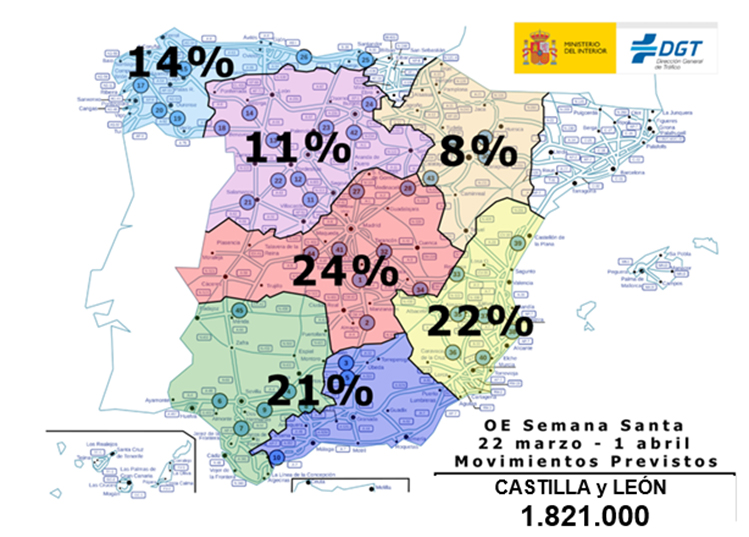 La Dirección General de Tráfico (DGT) prevé que las carreteras de la provincia registren unos 327.000 desplazamientos durante la Operación Especial Semana Santa 2024, que comienza hoy, a las 15 horas, y se cerrará a las 24 horas del próximo 1 de abril.