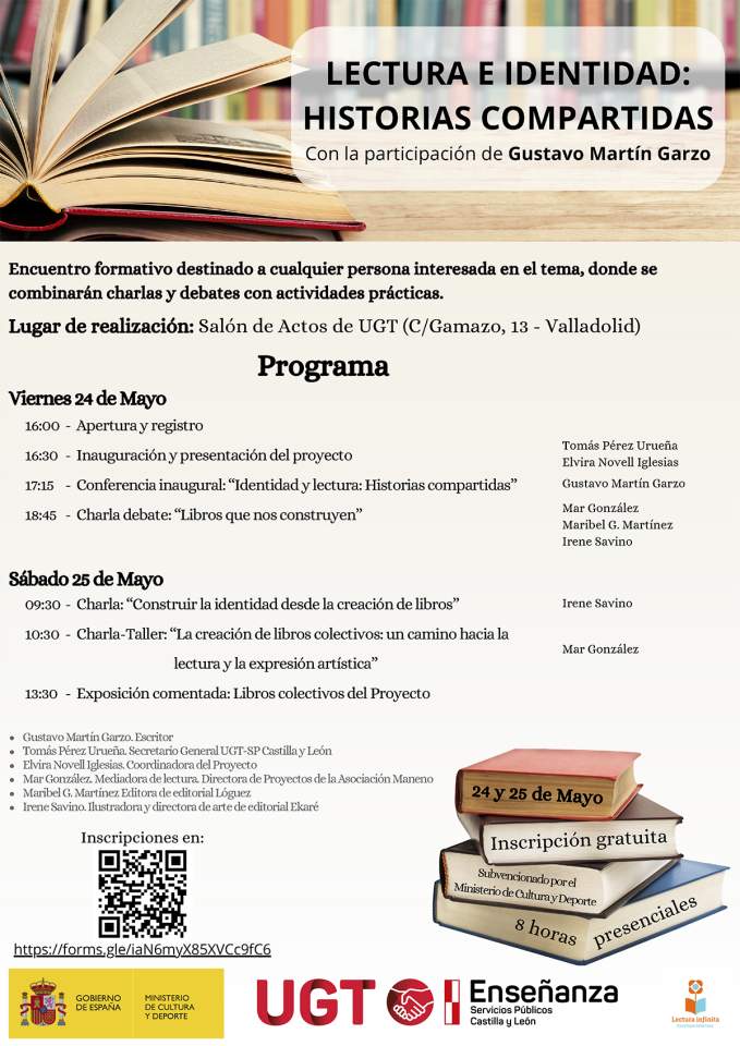 Las jornadas, financiadas por el Ministerio de Cultura y Deporte, tendrán lugar los días 24 y 25 de mayo en el salón de actos de UGTCyL (C/Gamazo 13) en Valladolid y combinarán charlas y debates con actividades práticas bajo el lema ‘Lectura e identidad: historias compartidas’.