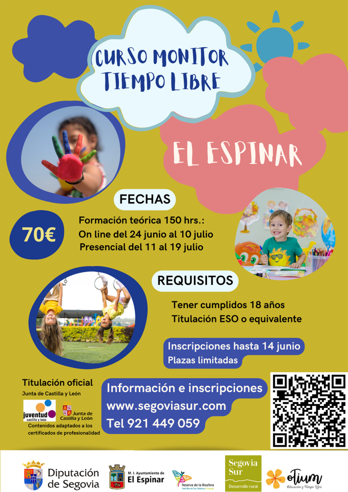 La Diputación de Segovia continúa facilitando formación como Monitor de Ocio y Tiempo Libre a los jóvenes de la provincia, a través de una nueva convocatoria en el periodo estival, para aquellos mayores de dieciocho años que posean la titulación de Educación Secundaria Obligatoria.