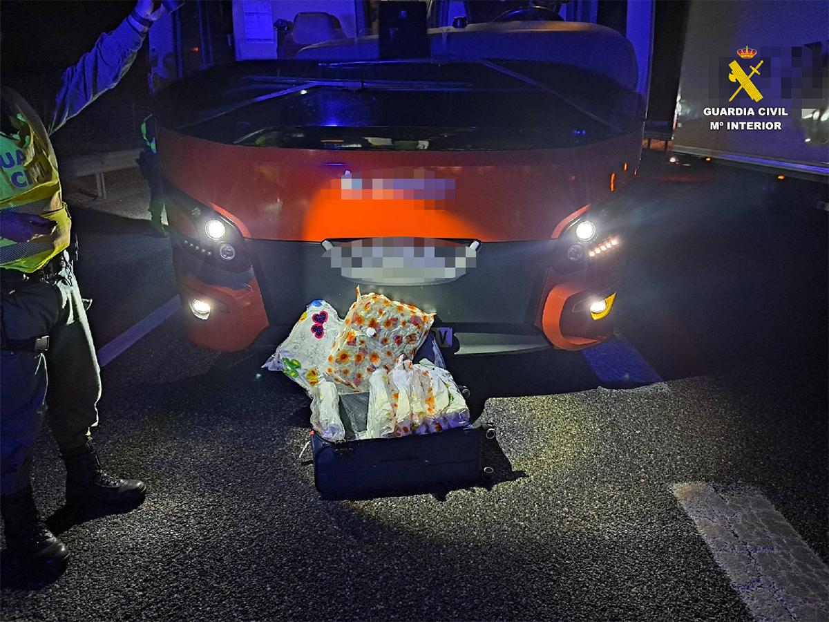 El pasado 24 de mayo, durante la realización de un dispositivo operativo realizado en la A-1, en el término municipal de Fresno de la Fuente, contra hechos delictivos y en prevención del tráfico de sustancias estupefacientes y psicotrópicas, componentes de la Unidad de Seguridad Ciudadana - USECIC- pararon un autobús en el que viajaban 28 personas.