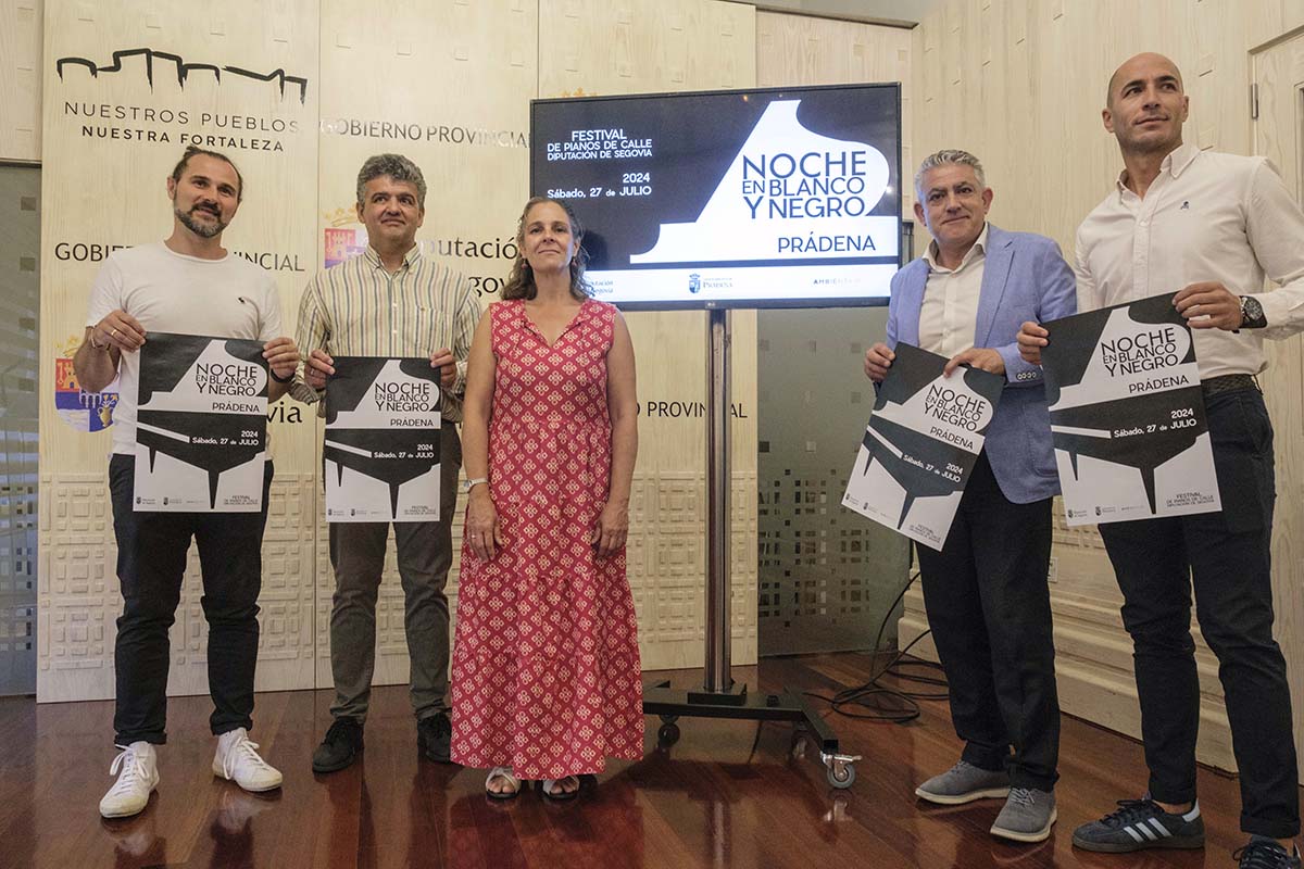 La ‘Noche en blanco y negro’ de la Diputación de Segovia llegará a la localidad de Prádena el próximo sábado 27 de julio para vestir sus calles de la elegancia de este festival de pianos en la calle que llega ya a su séptima edición. El diputado de Cultura, José María Bravo, acompañado del alcalde Prádena, Ismael Masedo, y del coordinador del proyecto, Pablo González, ha presentado esta mañana la nueva velada que reunirá a destacados músicos de renombre internacional.