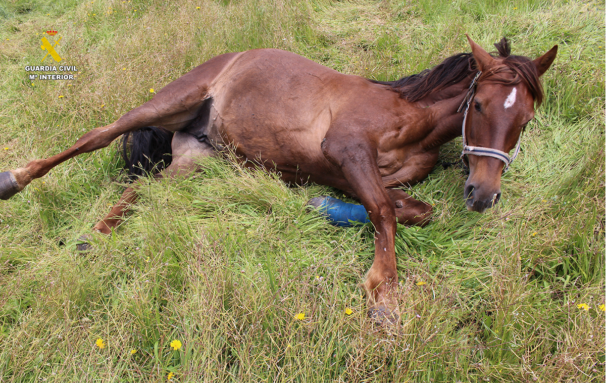 El origen de esas lesiones era que ambos animales habían sido maniatados por su propietario para limitar su desplazamiento. Las cuerdas -de las utilizadas para atar pacas de paja- estaban colocadas sobre las extremidades tanto delanteras como traseras, habiéndoles provocado diferentes cortes, con lo que presentaban heridas de diversa consideración. Uno de los animales era una yegua que se encontraba tumbada y que no podía levantarse a causa de las lesiones producidas. En fechas posteriores tuvo que ser sacrificada ante la imposibilidad de su recuperación y para evitar sufrimientos innecesarios. El otro ejemplar era un caballo que cojeaba ostensible por idénticos motivos.