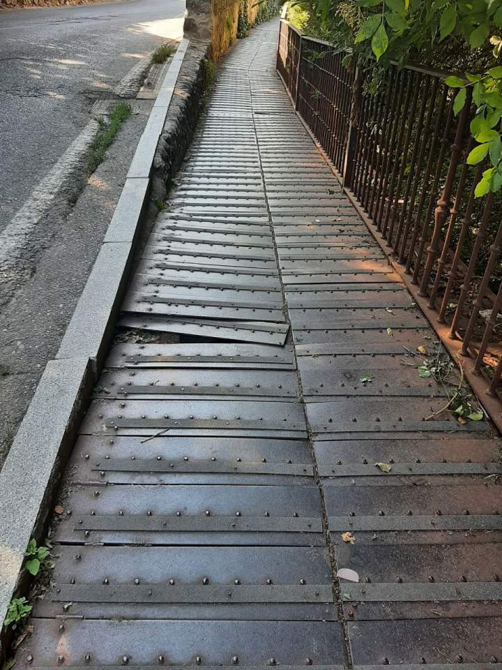 La pasarela junto al puente es el único camino por el que se puede acceder andando al lado opuesto, ya que el propio puente es de tránsito de vehículos. IU apremia al Gobierno del PP para que acometa su reparación cuanto antes, ya que en su estado actual supone un riesgo para los viandantes, que pueden tropezar por el estado de las planchas. Es necesario abordar este trabajo especialmente en esta época, en la que muchas personas, tanto población local como visitantes, aprovechan para pasear por la zona.