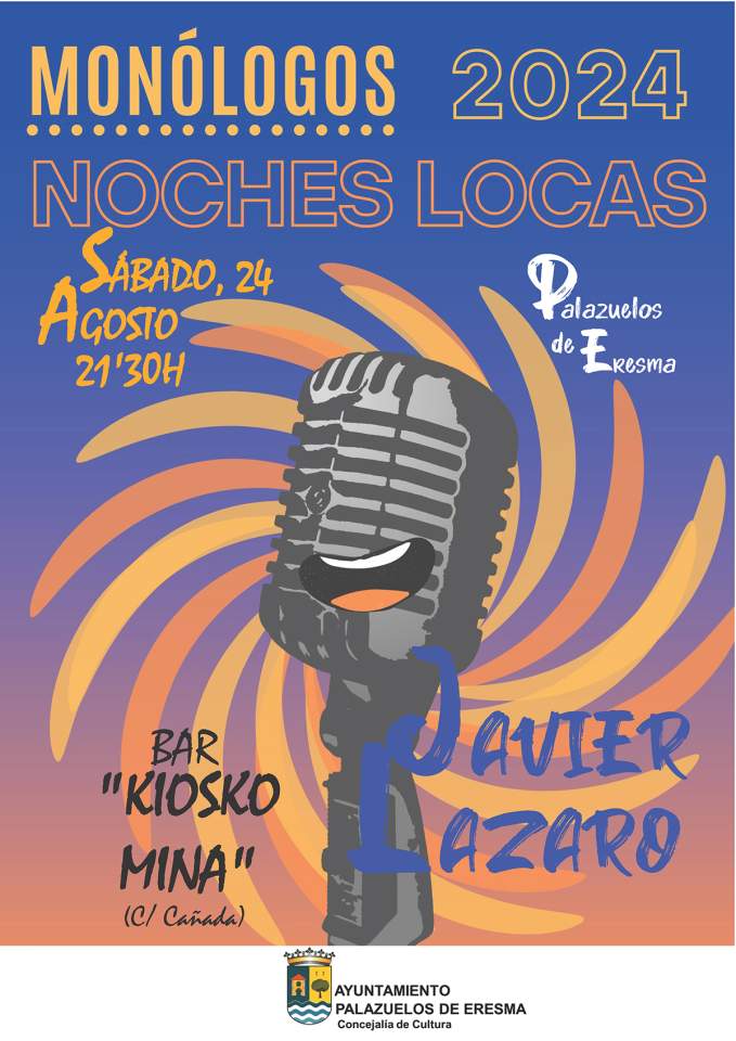 El sábado 24 de Agosto, a las 21’30 horas en la zona del “Kiosko-Bar de La Mina”, Javier nos ofrecerá el monólogo “Humor en estado puro. El show de Javier Lázaro”, un espectáculo de humor e imitaciones donde la frescura y la originalidad son sus principales activos. A través de una sucesión de sketchs, hilvanados bajo el hilo conductor de lo cotidiano llevado a lo absurdo y mediante un formato abierto siempre a los acontecimientos de la actualidad, el público no podrá parar de reír.