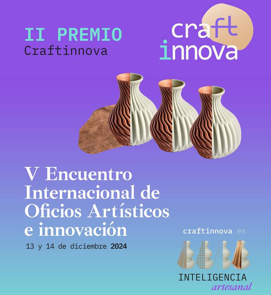 Este año hemos convocado la 2ª edición del Premio Craftinnova dirigida a estudiantes de Escuelas Superiores de Arte, Diseño, Restauración y otros centros de formación reglada en Diseño. Todavía están abiertas las bases de participación y pueden inscribirse los estudiantes matriculados en los cursos 2023-24 y/o 2024-25.