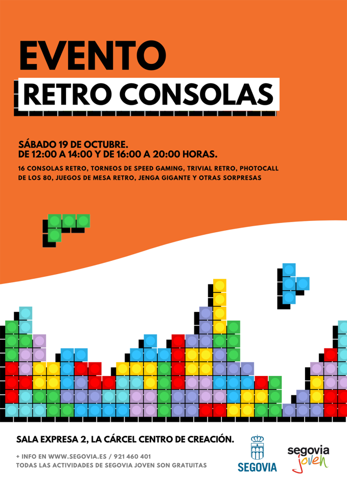 El área de Educación y Juventud del Ayuntamiento de Segovia organiza el sábado 19 de octubre la I Jornada de Retro Consolas, un evento que pretende recordar la historia de los videojuegos y rendir homenaje a las consolas que marcaron una época.