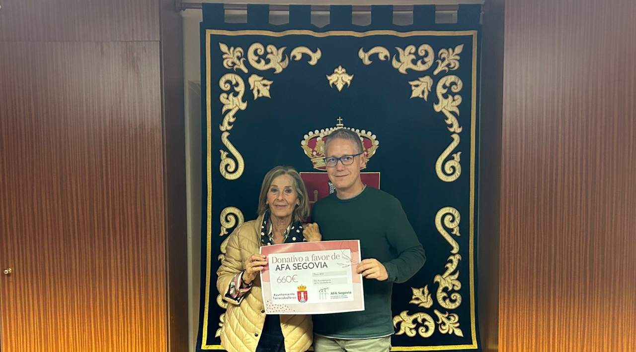 El Ayuntamiento de Torrecaballeros ha hecho entrega a la Asociación de Familiares de Enfermos de Alzheimer de Segovia AFA Segovia de un donativo de 660 euros recaudados en distintas acciones solidarias organizadas en el municipio.