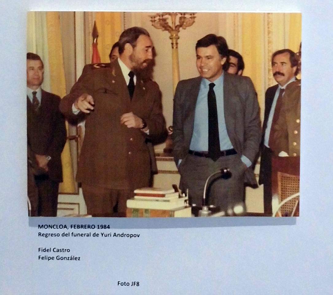 Las fotografías son un reflejo de la actividad frenética del Gobierno de Felipe González, sobre todo en la esfera internacional, y testimonio de la efervescente coyuntura política de este periodo. Algunas de estas imágenes muestran entrevistas con líderes políticos como Simón Peres, en enero de 1986, cuando España reconoce el Estado de Israel; el funeral de Estado de Yuri Andropov al que asistió junto a Fidel Castro, o misiones diplomáticas como la visita oficial a la URSS, en mayo del mismo año.