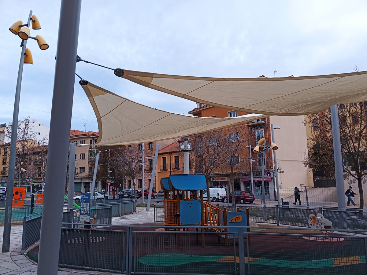 El Ayuntamiento de Segovia ha iniciado los trabajos de instalación de los entoldados destinados a crear una zona de sombra en la plaza de Somorrostro que actuará sobre las zonas infantiles y de graderío de ese punto de la ciudad, permitiendo el uso de esos espacios durante las horas de sol, mitigando así el efecto “isla de calor” y contribuyendo a la bajada de las temperaturas allí.