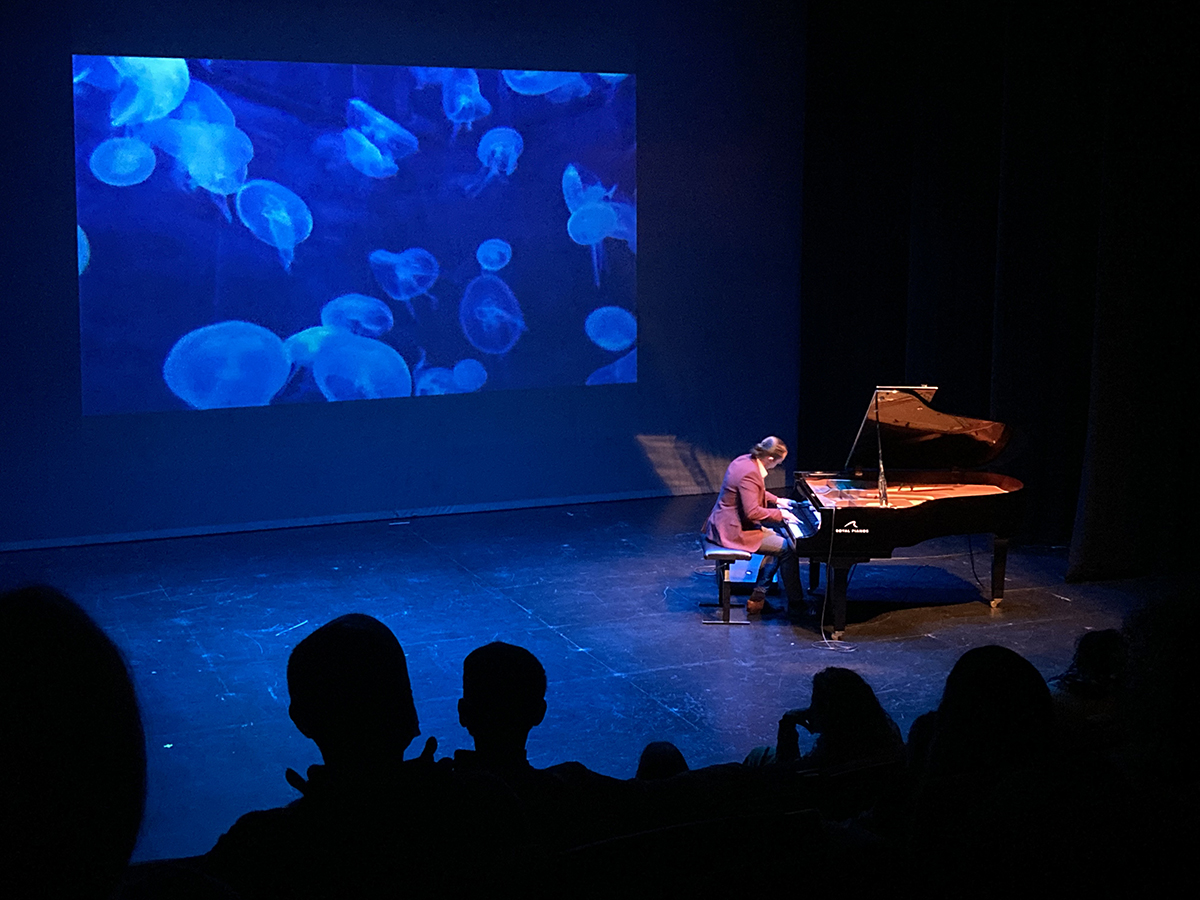 Por otro lado, Los Colores de la Música es un concierto donde el propio compositor interpreta su música y los alumnos exploran la relación entre música y color. Basado en la sinestesia de Messiaen, combina música y visuales para "ver la música y escuchar imágenes", asociando cada tonalidad con un color, textura y carácter únicos.