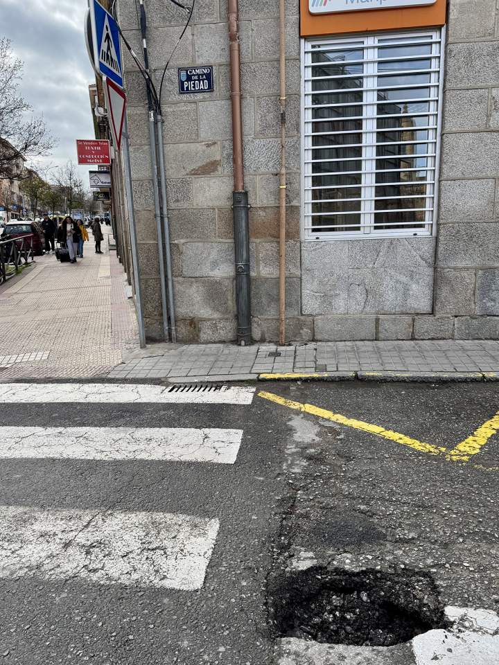 La portavoz de Ciudadanos en el Ayuntamiento de Segovia, Noemí Otero, ha solicitado el arreglo urgente de “un gran socavón” localizado al final de la calle Camino La Piedad y justo antes de la incorporación al Paseo Ezequiel González.