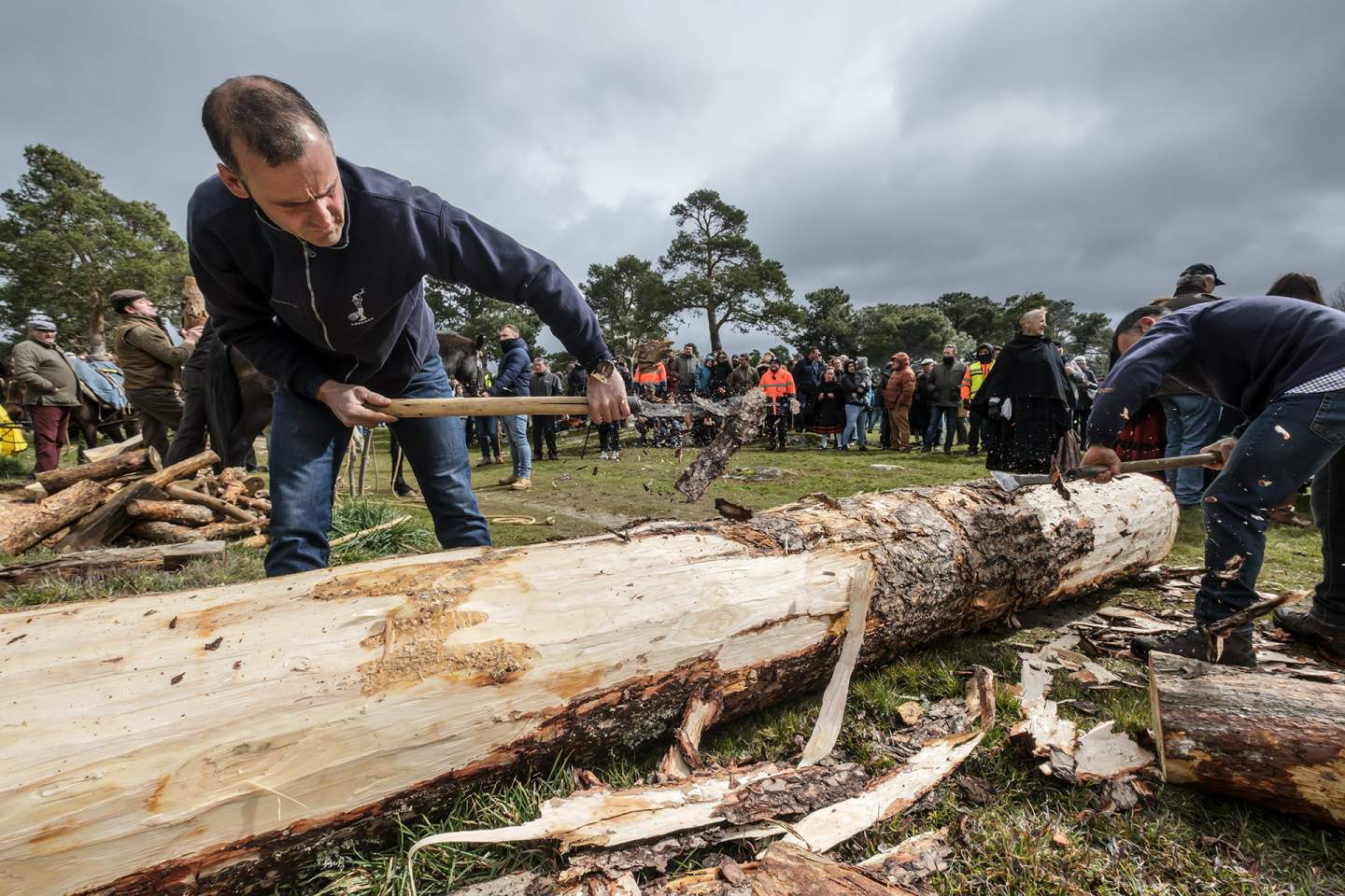 El Espinar rinde homenaje a los trabajadores del monte en la Fiesta de los Gabarreros con desfiles de carros, hacheros, exhibiciones de corta y carga de leña y baile a la luz de las teas.