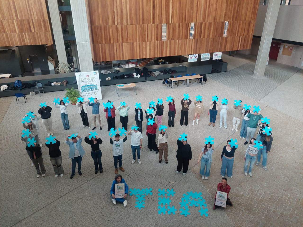 La presentación ha tenido lugar en el Ágora del Campus María Zambrano, la tarde del 3 de abril, con una puesta en escena diferente y fresca, involucrando a la comunidad educativa. Cerca de 50 alumnos y alumnas de publicidad del campus María Zambrano de la UVA, han creado un infinito humano con piezas de puzzle azules, haciendo a la alusión a la campaña del Día Mundial del Autismo, Somos Infinitos.