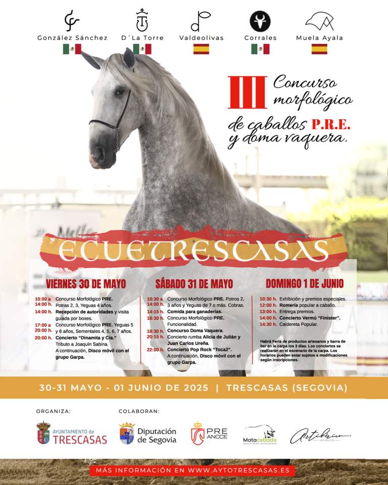 Todo está preparado en Trescasas para celebrar una de las grandes citas festivas del año en la provincia: la feria ECUETRESCASAS, que tendrá lugar del viernes 30 de mayo al domingo 1 de junio con una programación cargada de actividades ecuestres, música en directo, feria de productos artesanos y un gran ambiente popular.