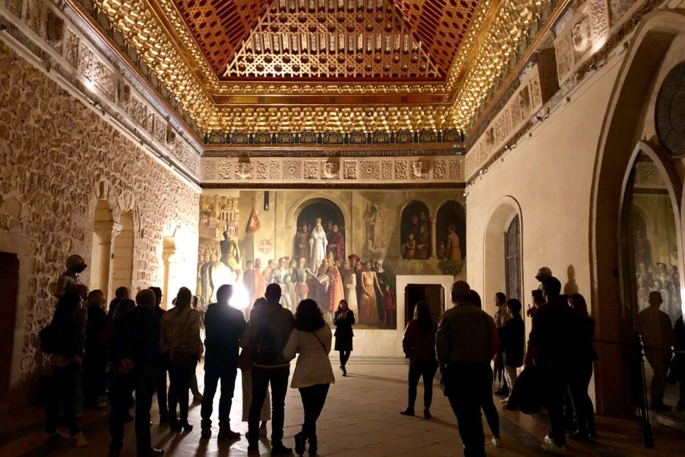 La primera de ellas, que agotó localidades en ediciones anteriores, regresa con cuatro únicas sesiones los días 20 de septiembre y 19 de octubre (20:45 y 22:15 horas). En esta visita, una dama de la corte conduce a los asistentes por los rincones más ocultos del palacio, desvelando confidencias de la reina Isabel en el siglo XV. El recorrido cuenta con la asesoría histórica de Teresa Cunillera, colaboradora de la serie Isabel (TVE), e incluye piezas del Cancionero de Palacio interpretadas con instrumentos históricos por José Escudero y María Eugenia Parejo.