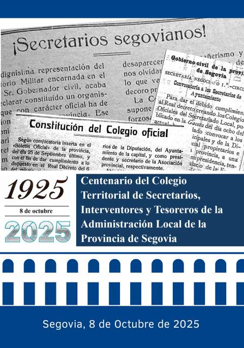 El Colegio Oficial de Secretarios, Interventores y Tesoreros de la Administración Local de la Provincia de Segovia (COSITAL-Segovia) conmemora el próximo 8 de octubre de 2025 el Centenario de la constitución de su Colegio Territorial, una fecha histórica para los profesionales que desempeñan estas funciones en la provincia.