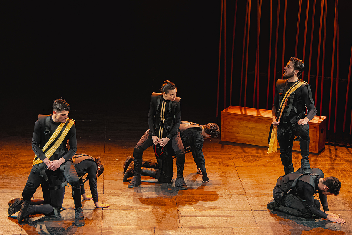 De esta manera, Ay Teatro propone un viaje al origen puro de la tragedia clásica en el que el joven elenco, formado por Cira Ascanio, Marta Estal, Fran Garzía, Daniel Migueláñez, Gabriel de Mulder y Mario Salas encarna a todos los personajes de una familia capaz de transgredir los límites sociales hasta las últimas consecuencias. Tebas, su esposa y hermana, sus hijos e hijas, su sucesor Creonte, su adivino Tiresias, su alada pesadilla monstruosa y enigmática, pasan por el escenario deshaciéndose y rehaciéndose en la piel de los siete intérpretes que afrontan de manera melódica su destino.