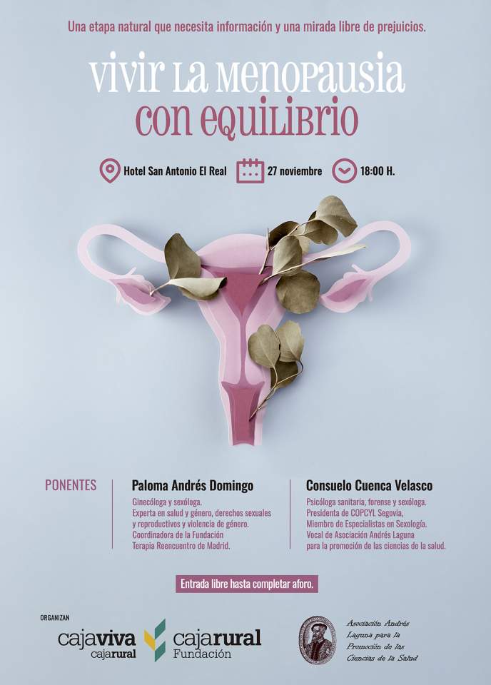 La Fundación Caja Rural de Segovia, en colaboración con la Asociación Andrés Laguna para la Promoción de las Ciencias de la Salud, presentan la jornada “Vivir la menopausia con equilibrio”, que tendrá lugar el próximo 27 de noviembre a las 18:00 horas en los salones del Hotel San Antonio el Real. La asistencia será libre hasta completar aforo.
