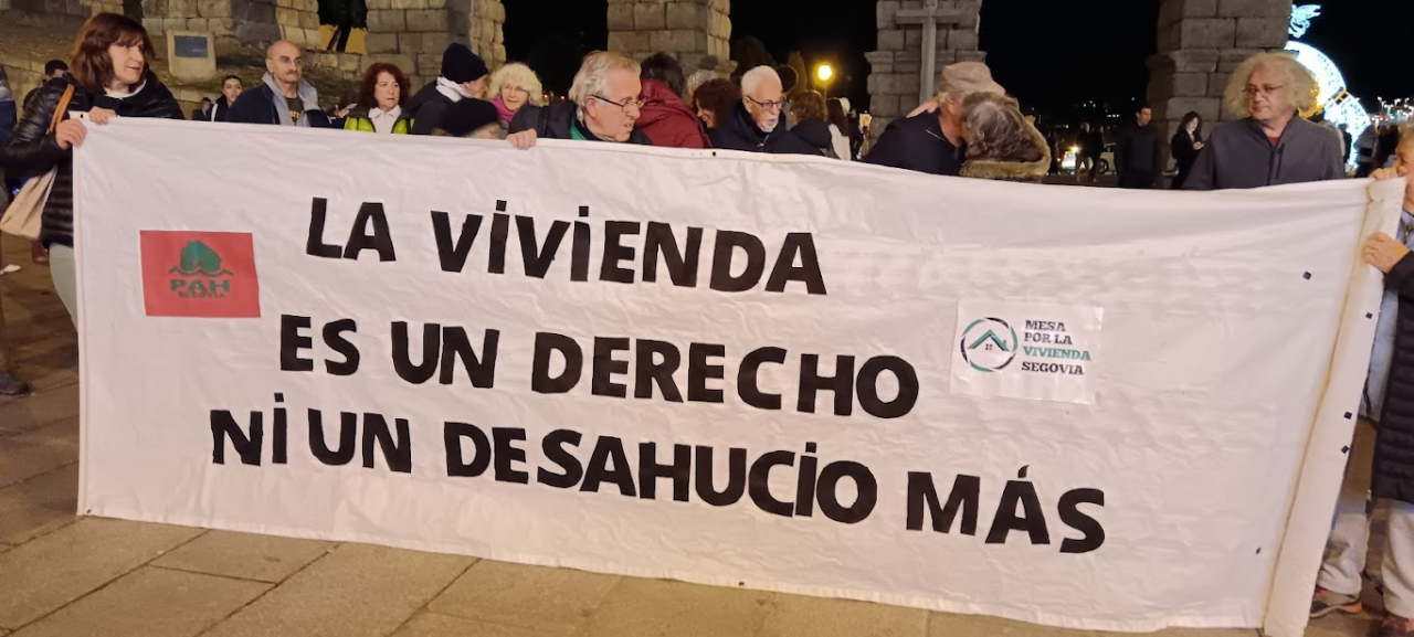 «La vivienda es un derecho. Ni un desahucio más» fue el lema de la pancarta que encabezó la manifestación que recorrió las calles de Segovia en la tarde del 13 de diciembre de 2025. La movilización, convocada por la Plataforma de Afectados por la Hipoteca (PAH) con el apoyo de la recién constituida Mesa por la Vivienda de Segovia, reunió a decenas de personas que se concentraron a las seis y media de la tarde en la Plaza del Azoguejo.