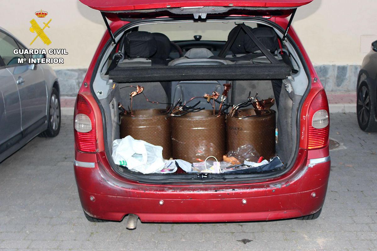 En el marco de las funciones de prevención de la seguridad ciudadana, una patrulla de seguridad ciudadana paró un vehículo que circulaba por el polígono, que se detuvo finalmente tras las indicaciones de los agentes. Durante la identificación de los ocupantes, se constataron circunstancias que levantaron sospechas, realizándose el registro de las pertenencias de las personas y del vehículo, revelando la inspección del maletero la presencia de tres bobinas de cobre, igualmente impregnadas en aceite.